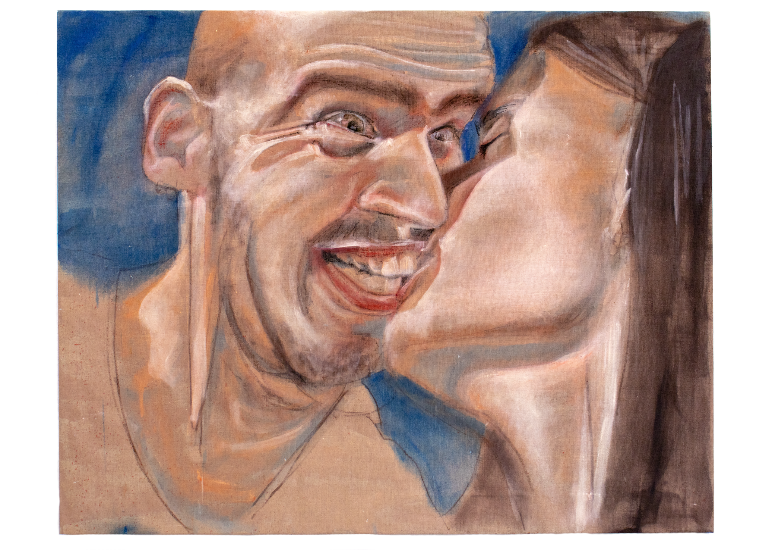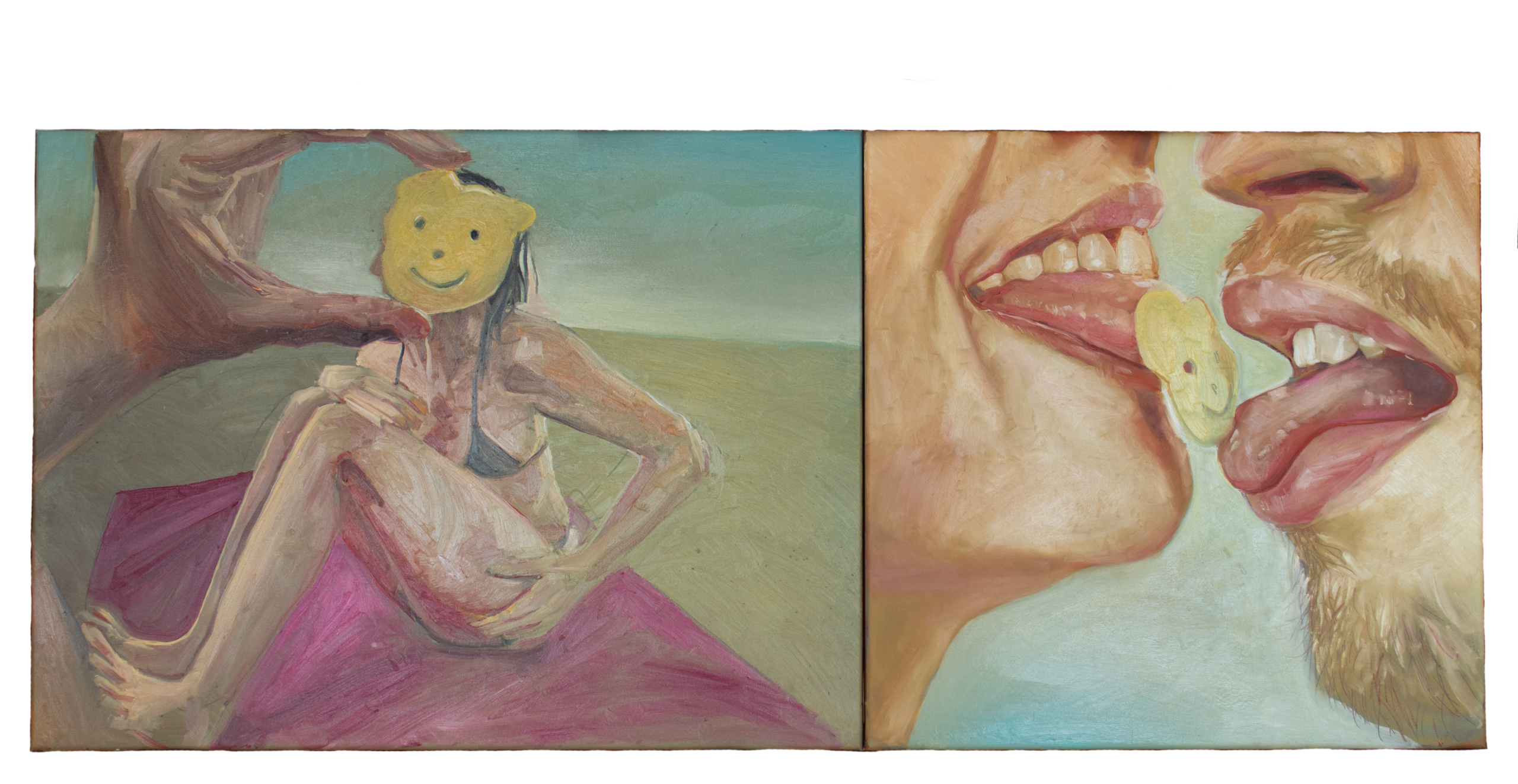 Poljub, 2025, olje in lepilo na platno, 30×30