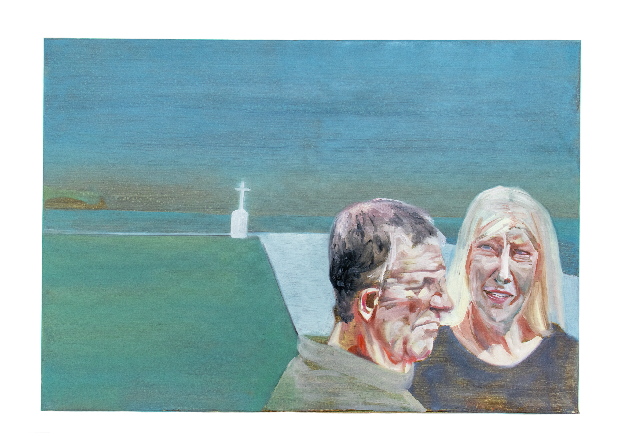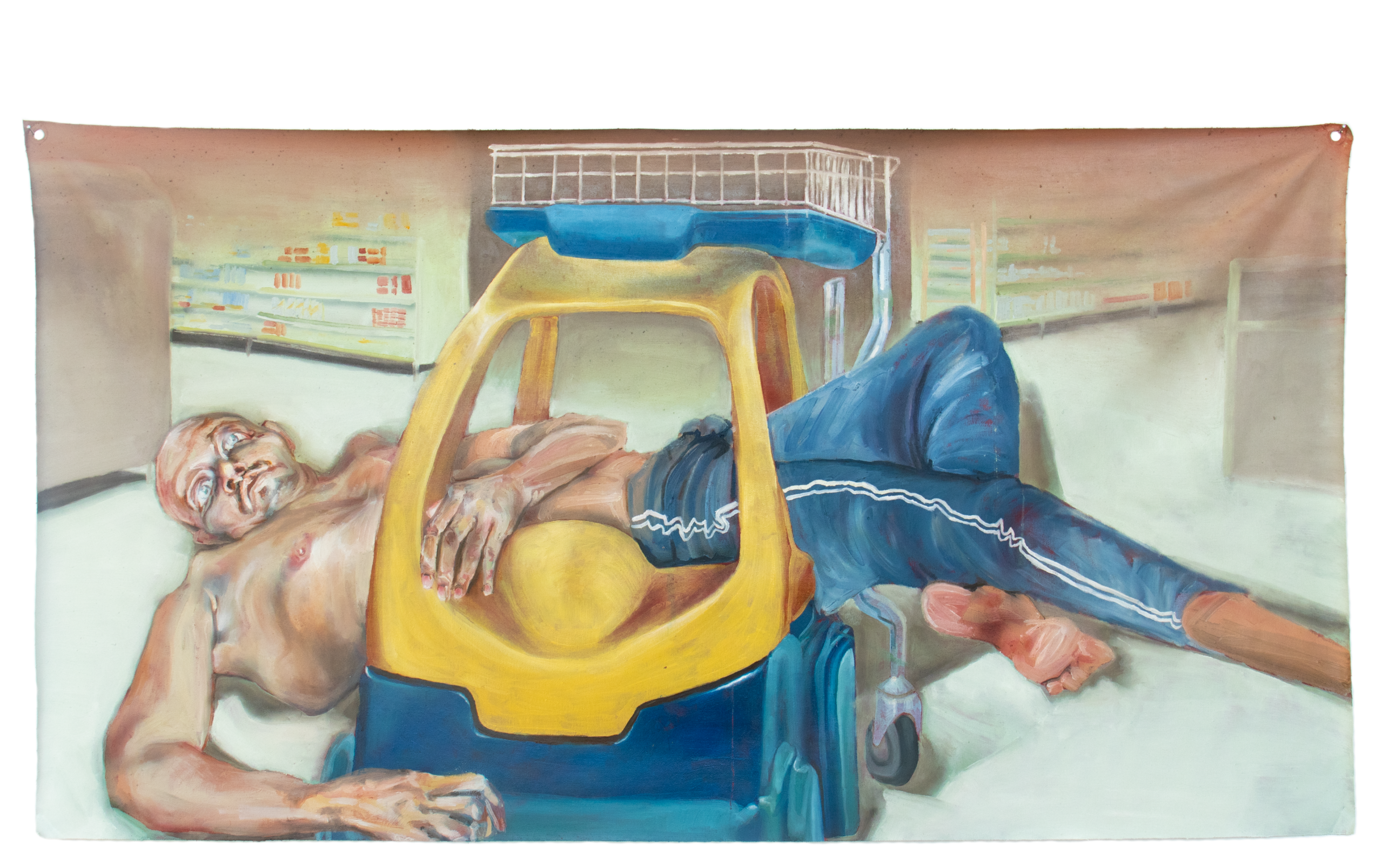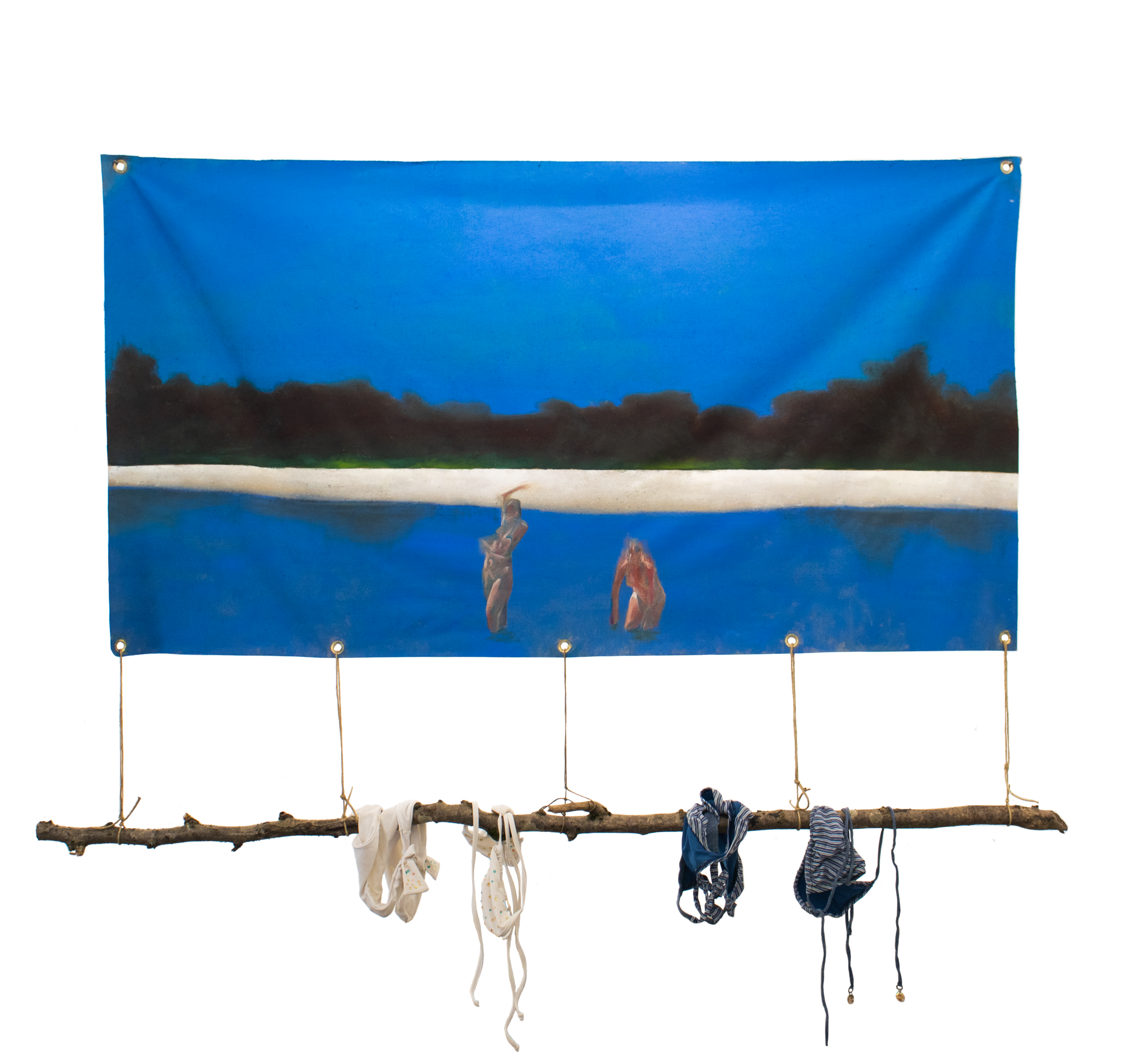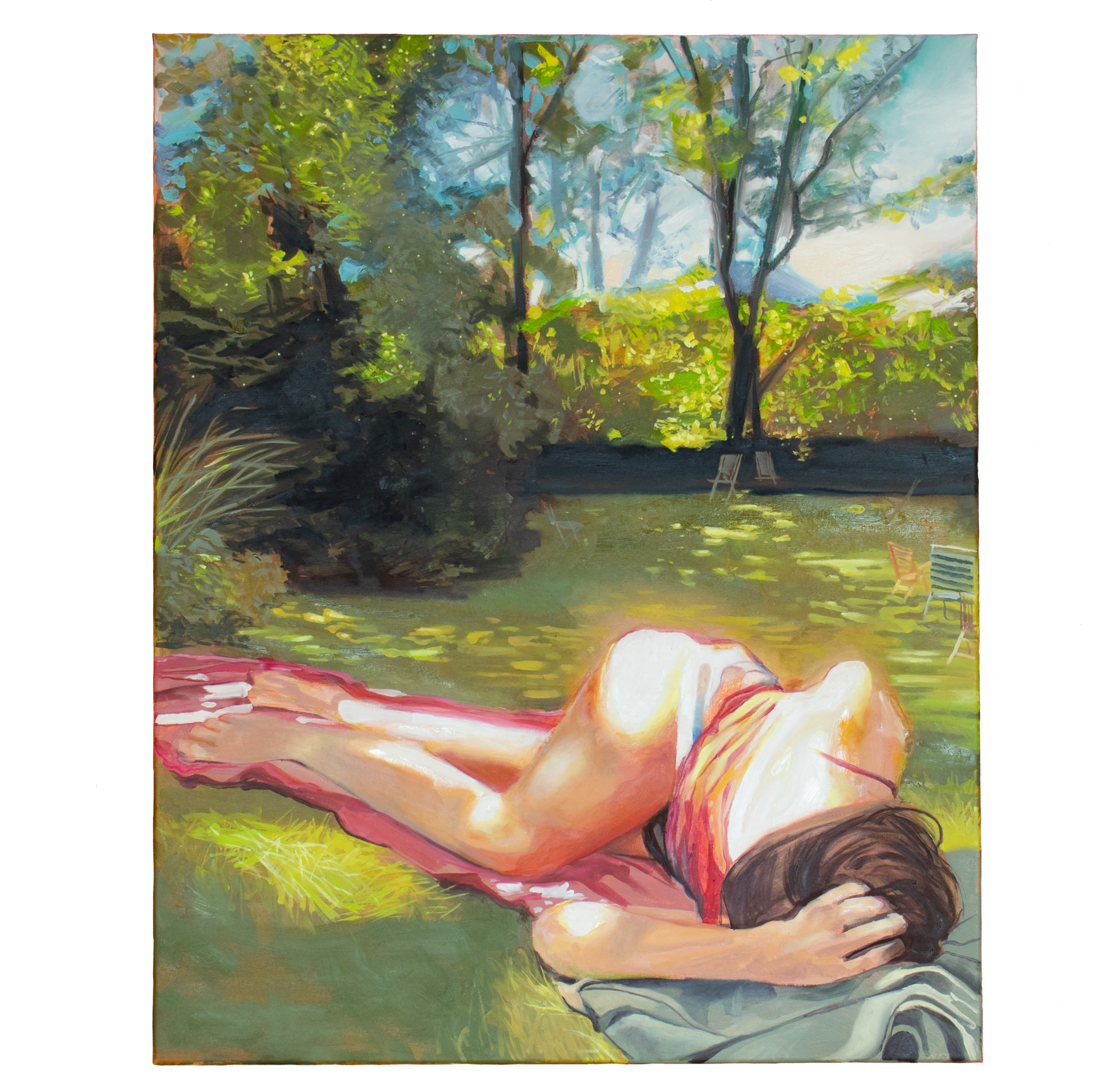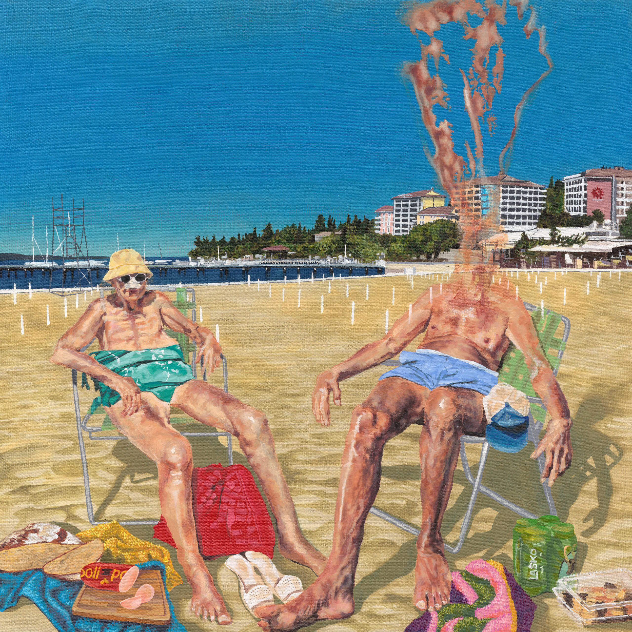 Sončenje brez vsega, 2025, akril in olje na platno, 80×100